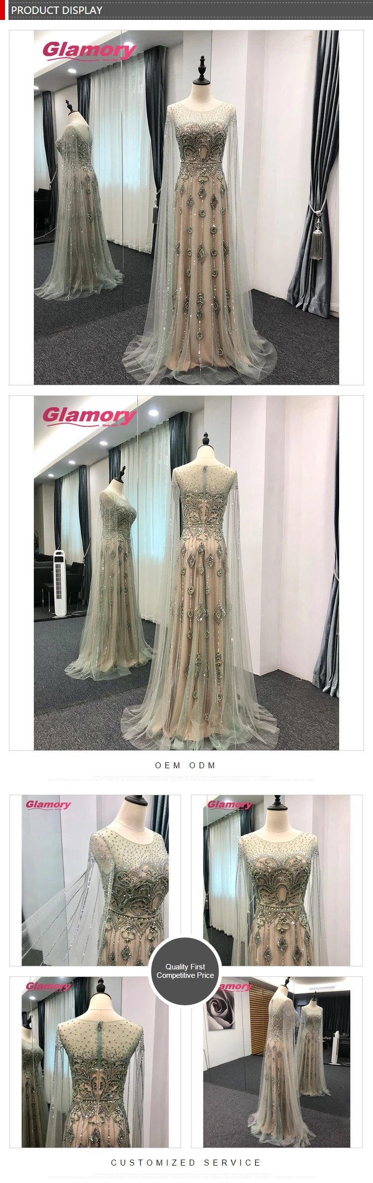 Latest OEM Factory Luxury Evening Elegant O-Neck Long Sleeves With Flutter Sleeves Crystal Beading Mermaid Prom Dress