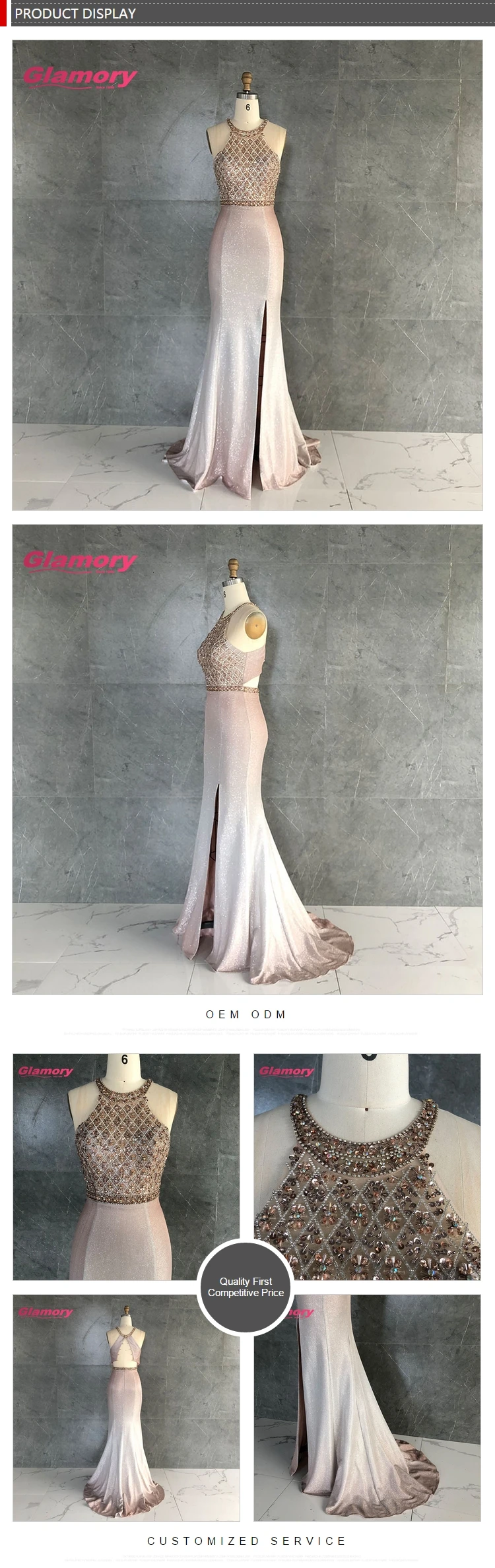 2020 Bottom Price Halter Party Evening Unique Glitter Fabric Sexy Formal Long Prom Dress