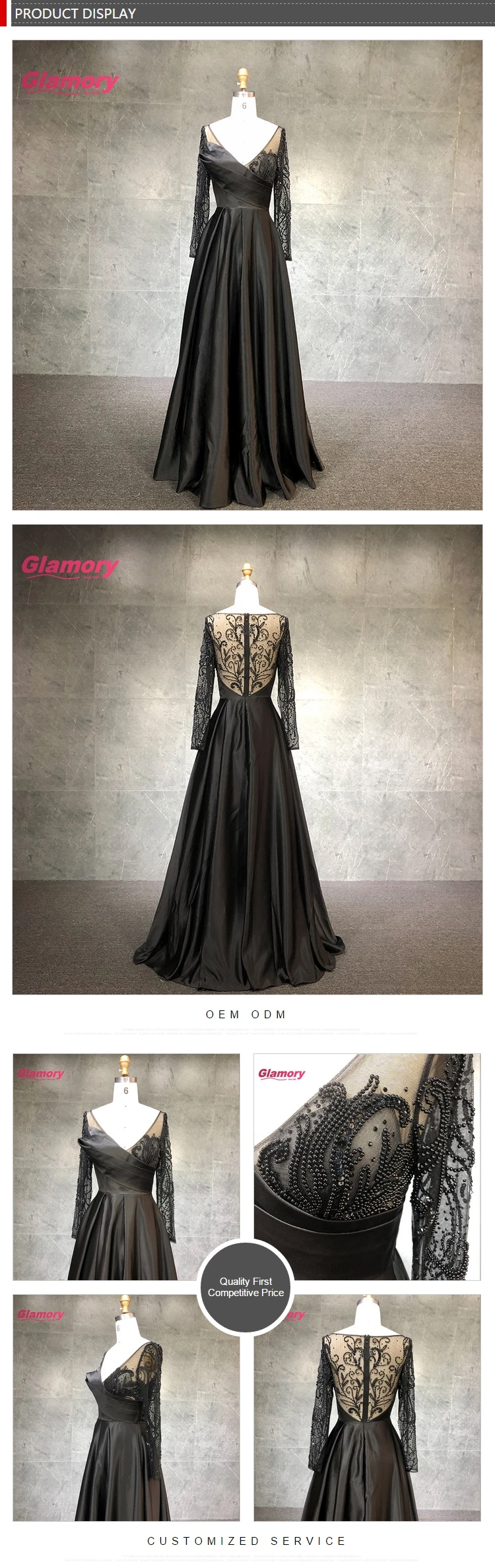 2020 Fashion New Style Deep V Neck Long Sleeves Prom Handmade Beading Evening Dress for Ladies