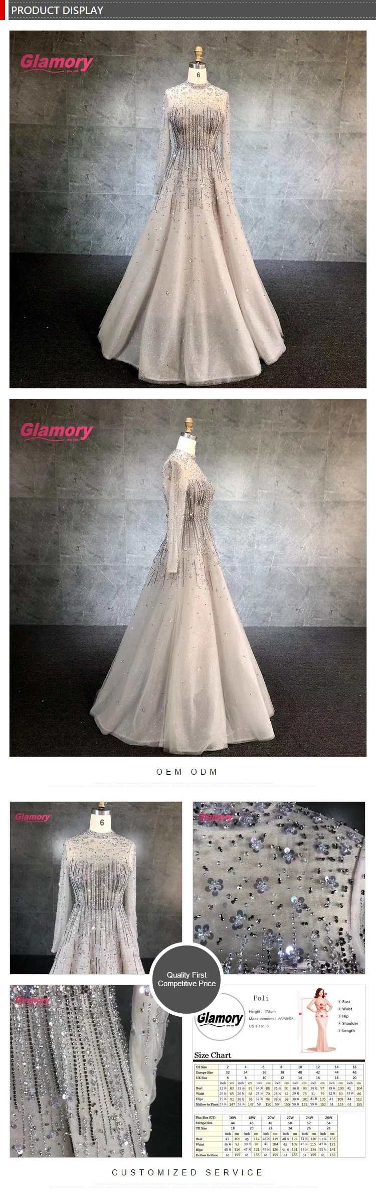 GLAMORYS was founded in the year of 1999 in Chaozhou City, the high end wedding dress gown& evening dress of China. Through the 20 year's development; we have been devoting ourselves to the happy moments and unique beauty of the blessed. We are well acknowledged in the industry with the design ability to satisfy the specific requirement from customers. We have stable and controllable supply chain for high quality of material like lace, fabric, bead work, etc; We are well equipped with the -cutting machine and experienced front-line staff for the perfection of each products. We have the professional pre and after-sale system both for consulting and problem solving to assure all the requirements from customers. For the past two decade, we have been serving thousands of bulk orders for customer from more than 20 countries like UK, SA, SAE, USA, etc and with the development of e-commerce, we now are embracing the new channel and to bring more value to our customers by promising: 1:Small order accepted: we have the warehouse and stock for ready for shipment any time and any moment; 2: Tailer-made service offered: we have the experienced designer listening to your voice; ------ We understand the happy moment for you is precious; We listen carefully and we act heartedly; We cherish the trust you have with us and will contribute all we can with our products for your glamor time! |