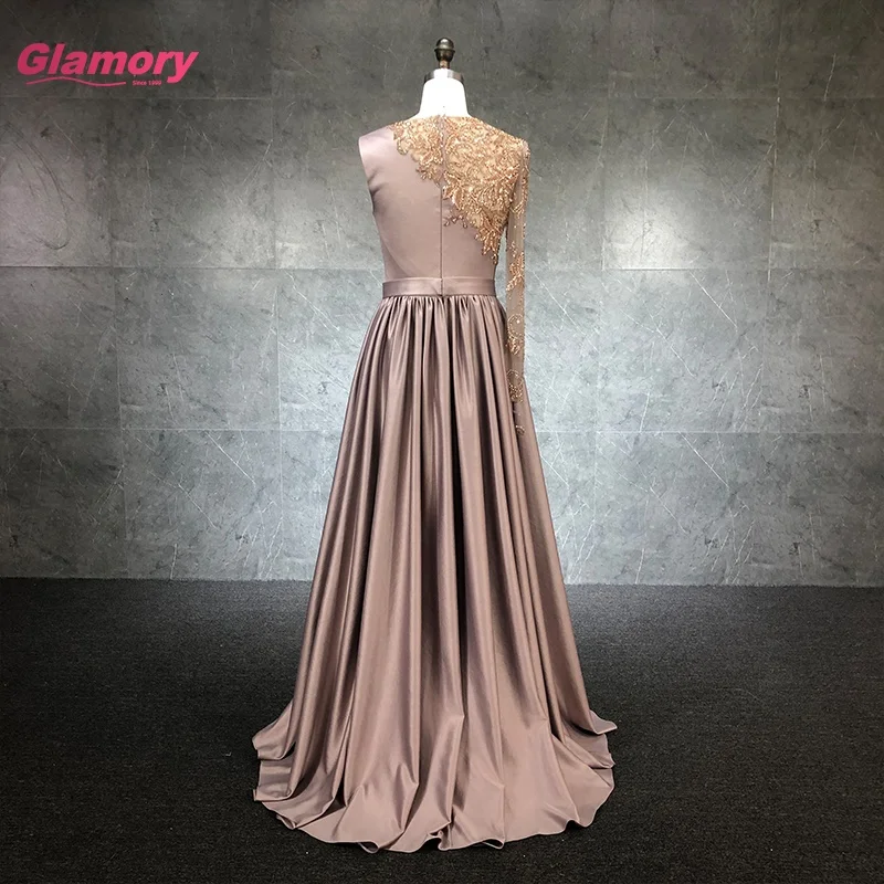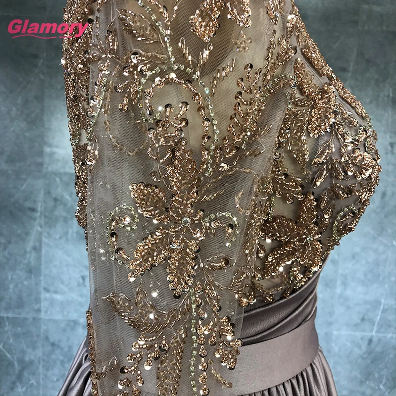 2021 New Designs Lady Party Plus Size Full Sleeve Floor-length Gray Pleat Satin Evening Dresses