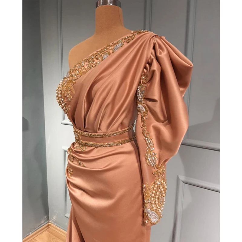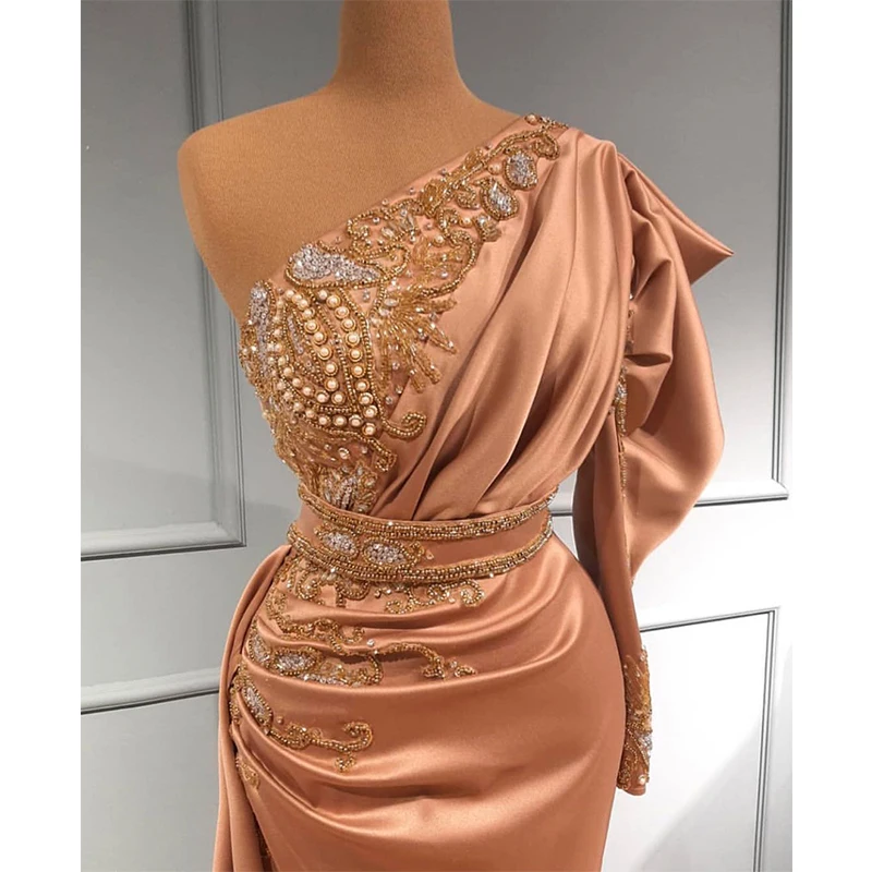 New Custom Luxury Handmade Beading With Pleated One-shoulder Women Wrap Dresses Sexy Satin Evening Dresses