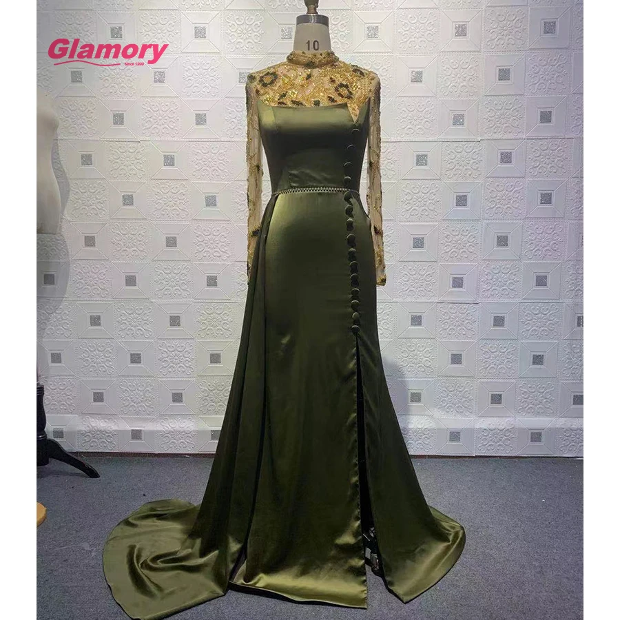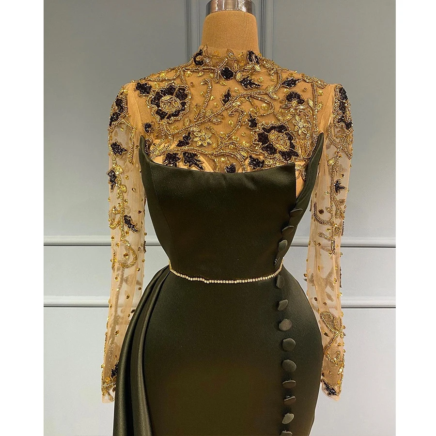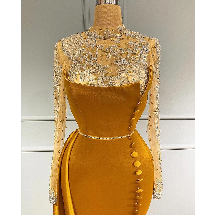 2022 New Arrival Fashion High Neck Elegant Gown Ladies Long Sleeves Mermaid Beaded Evening Gowns