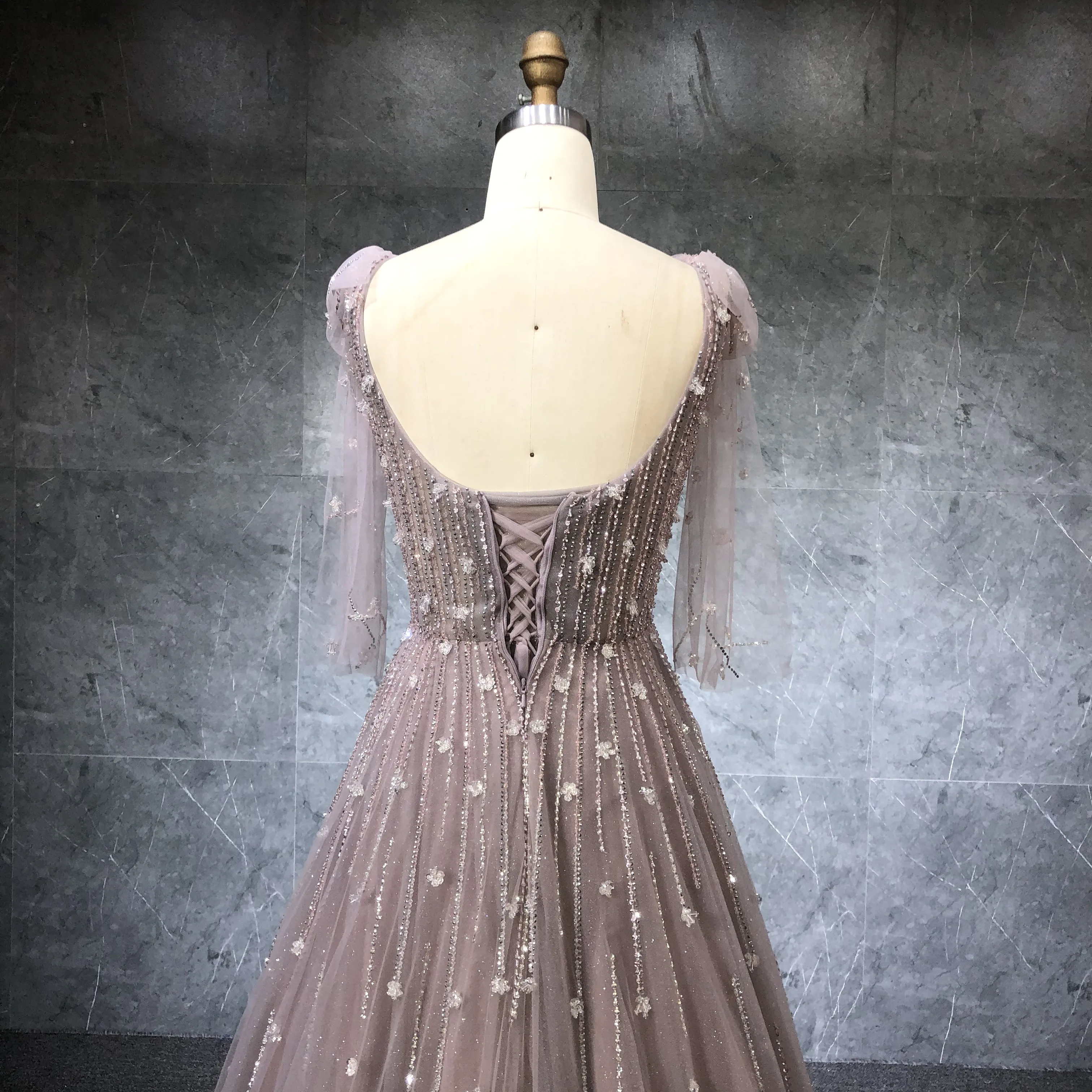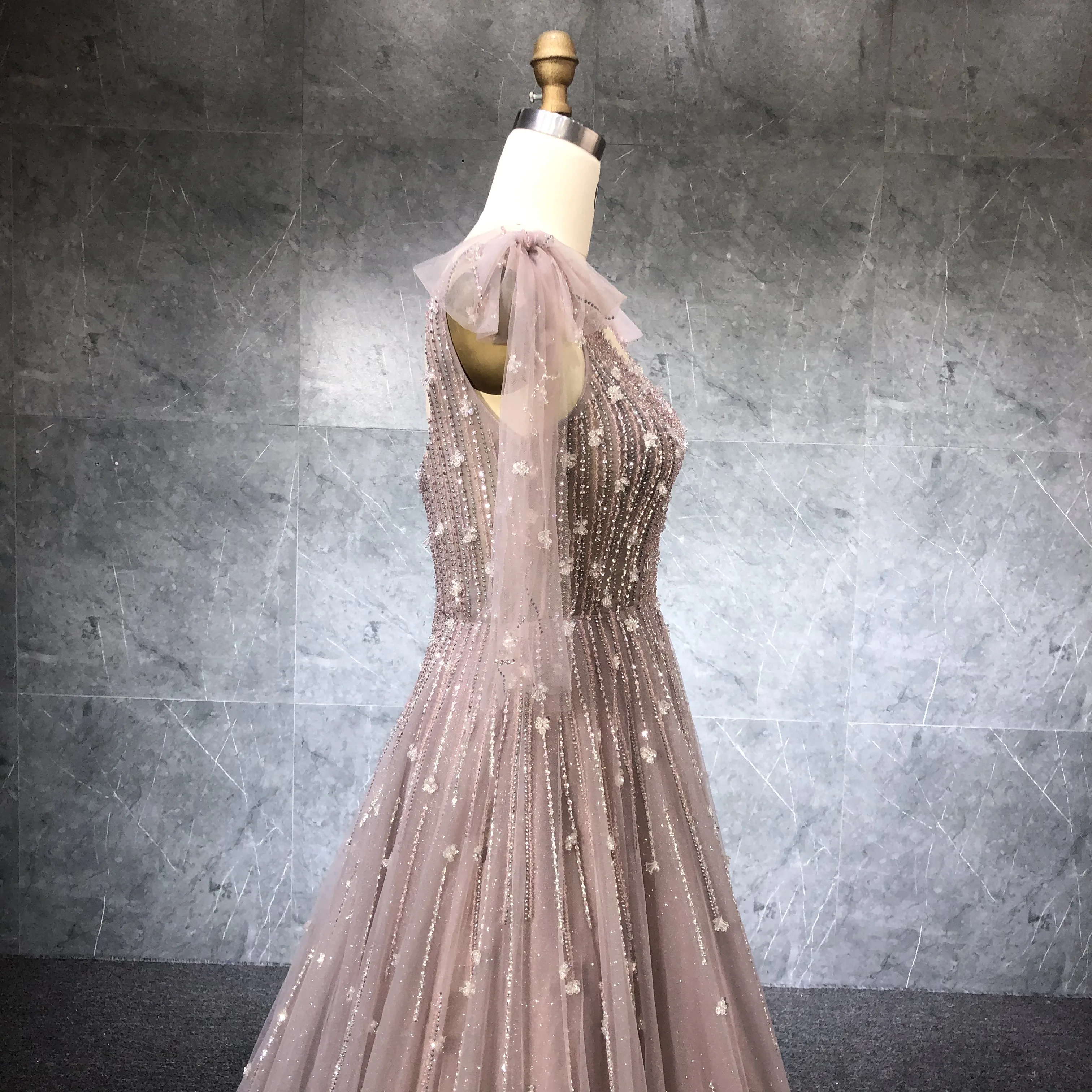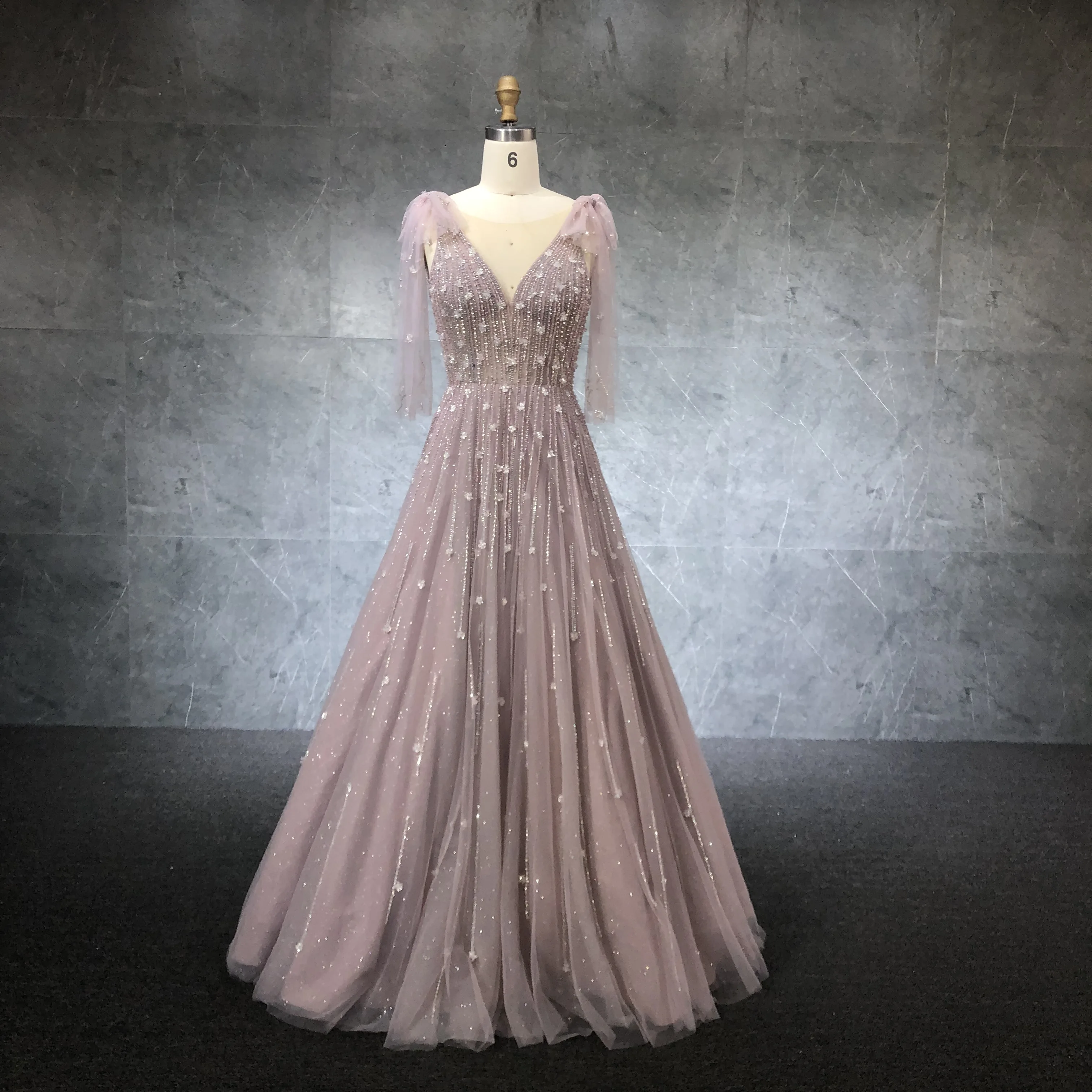 New Style Gorgeous A-line Glitter Tulle Evening Dress Spaghetti Strap With Bow Decoration Crystal Beading Party Gowns