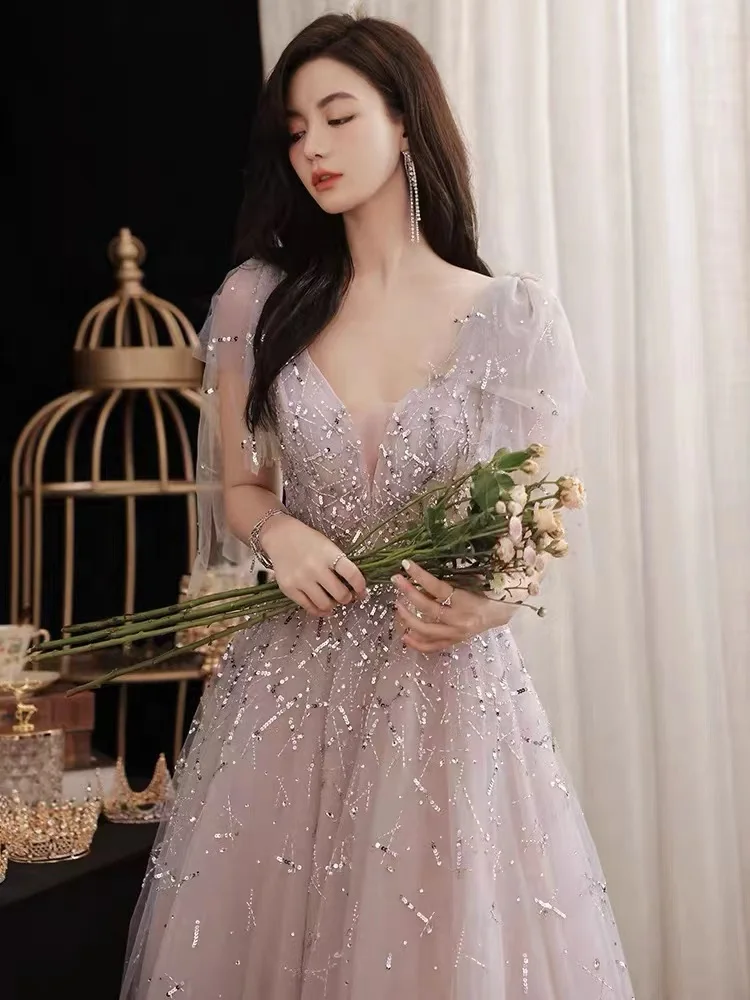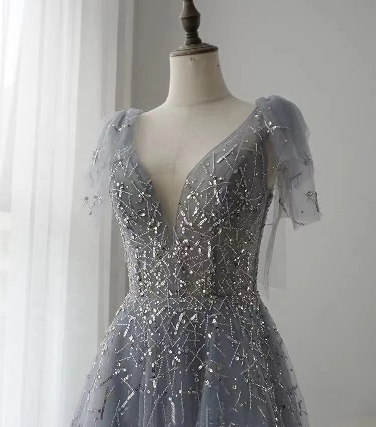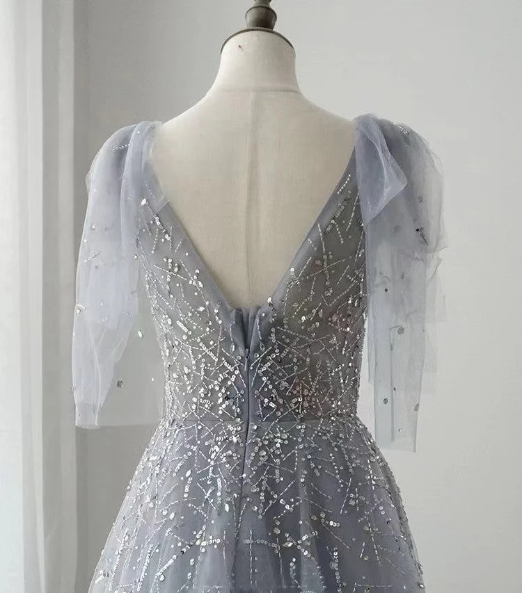 NEW Women Elegant a Line Evening Dresses Illusion Deep V Neck Beading Party Evening Dresses