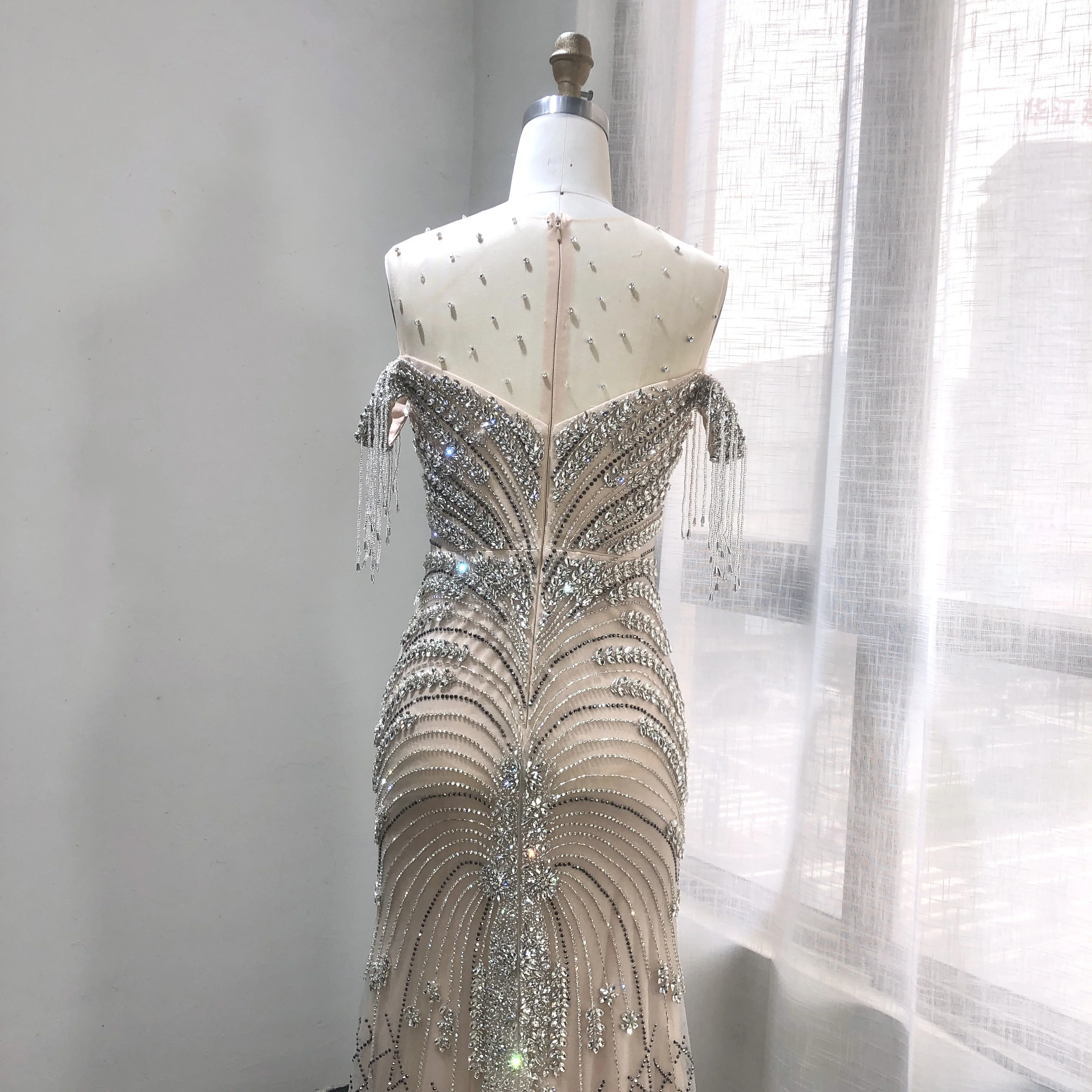 2025 New Illusion Shining Beading Formal Dresses Mermaid Prom Dresses Tassel Tulle Mermaid Evening Dresses