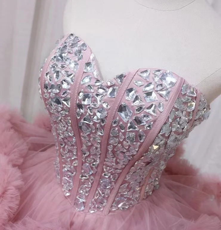 Pink New Design Sweet Heart Beading Sugar Dress Ruffles Party Evening Dress