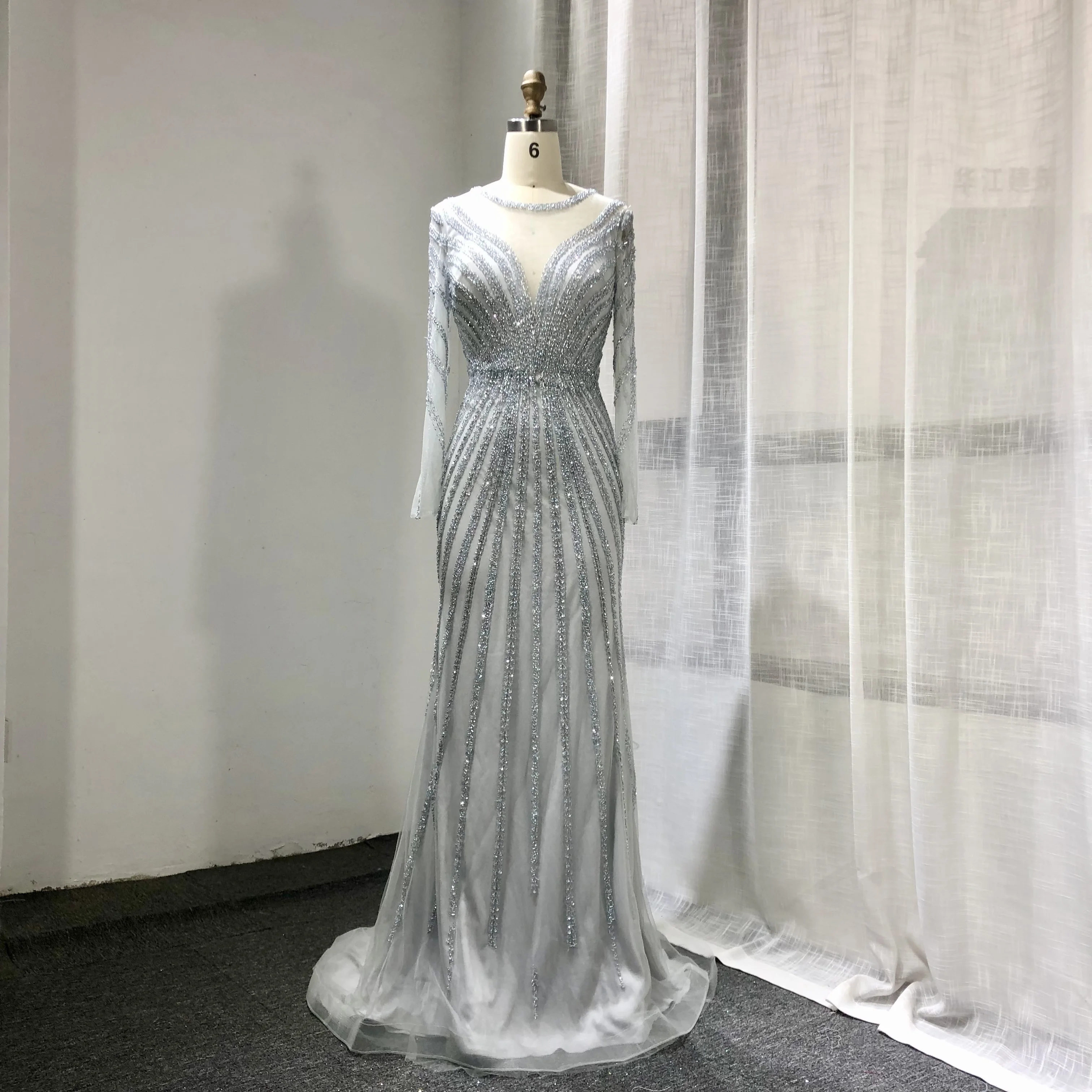 2022 Plus Size Women Evening Dress Long Sleeve Slim Solid Colour Elegant Gown Wholesale Price Evening for Women