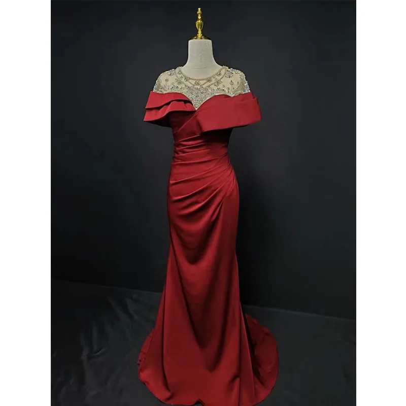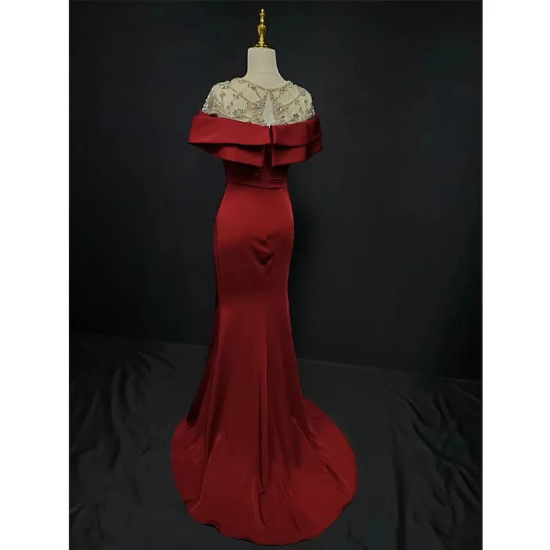 Red Banquet Evening Dress Fashion Party Long Evening Dress Elegant Slim Sexy Fishtail Party Dress