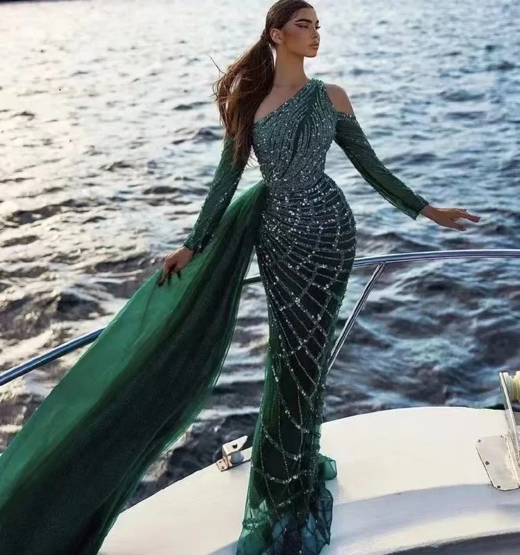 NEW 2023 One Shoulder Luxury Dubai Evening Dress Arabic Mermaid Prom Formal Dress for Wedding Party