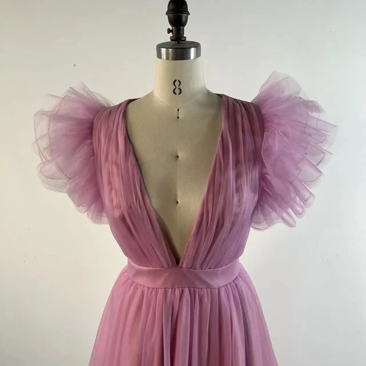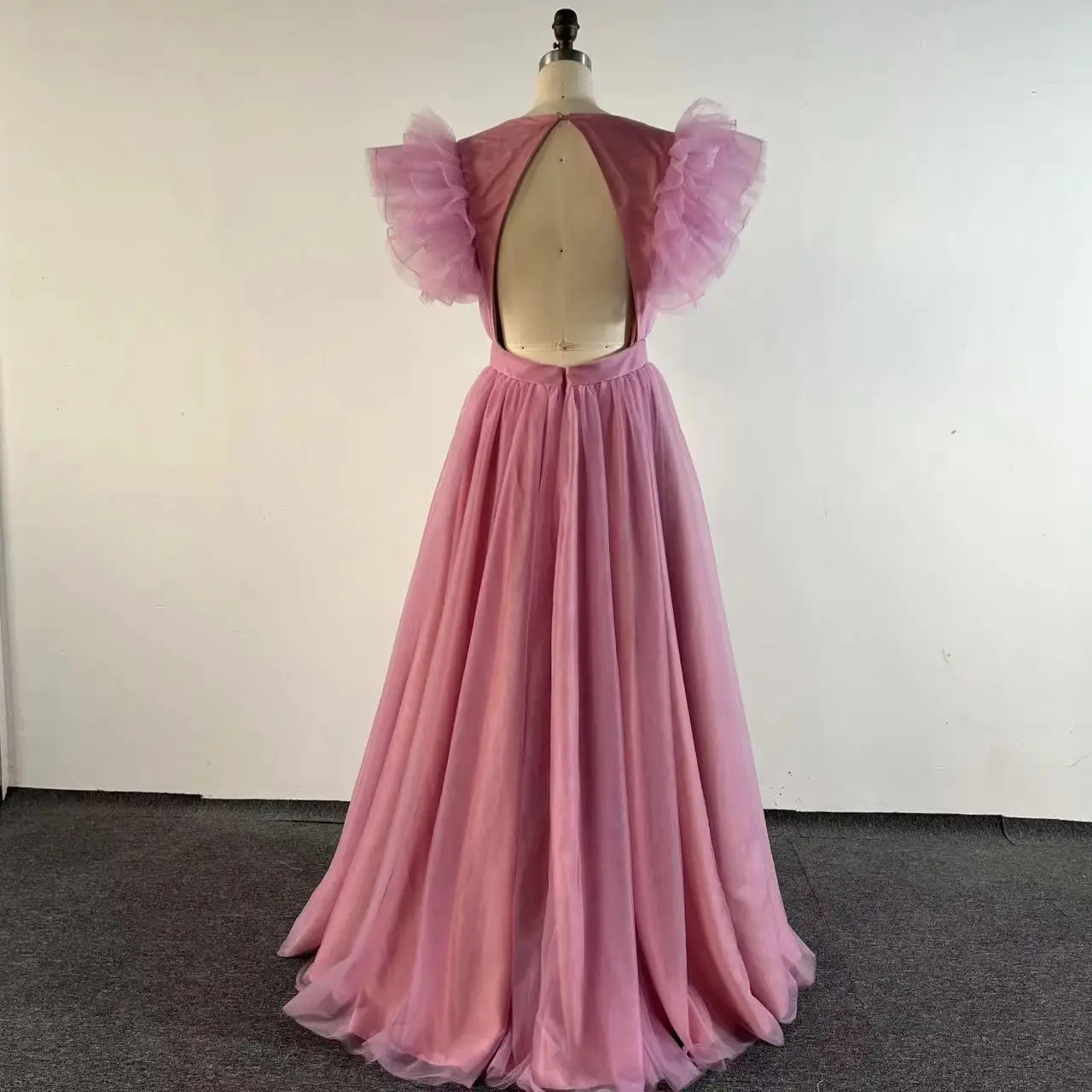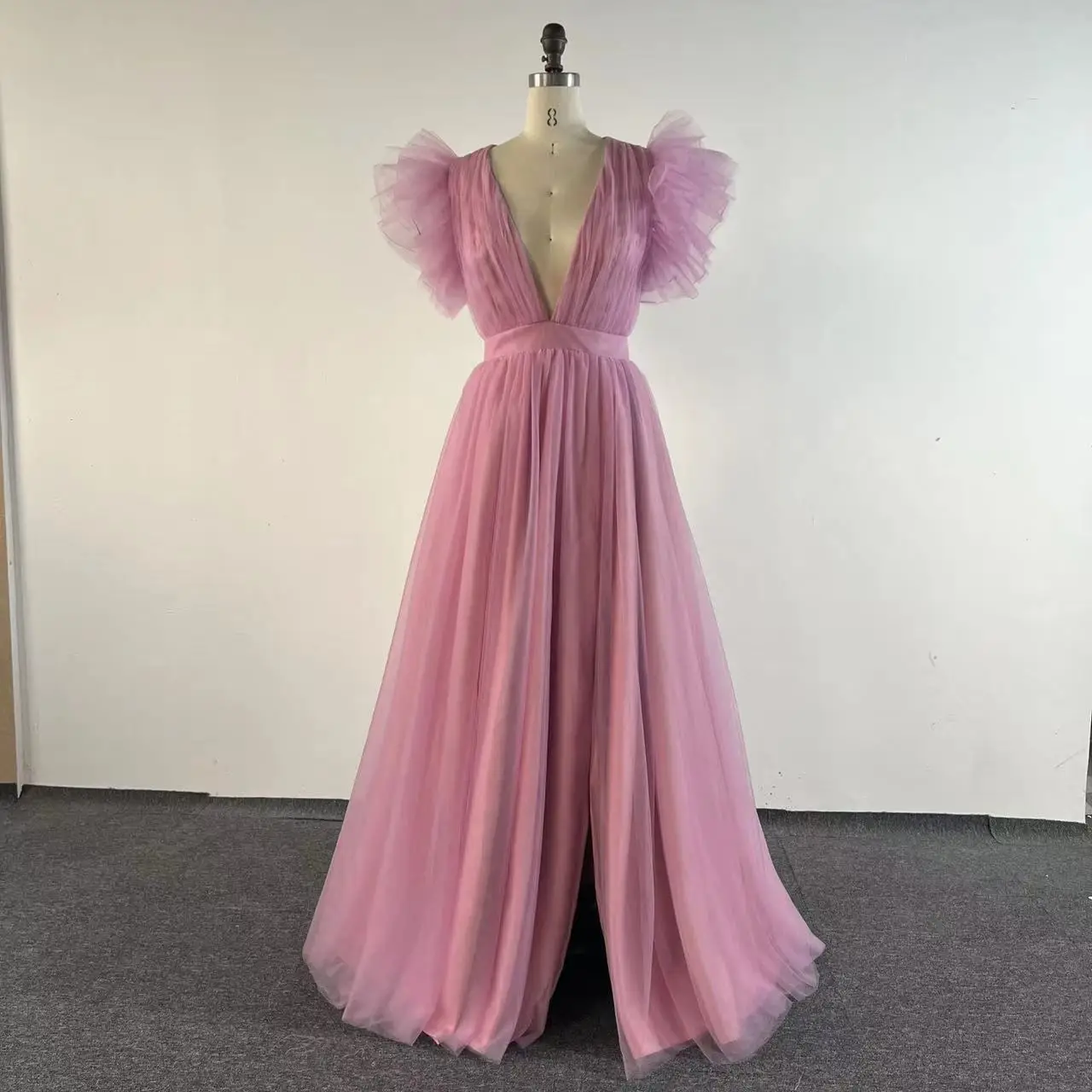 Fuchsia Sexy Split Long Tulle Women Prom Dress A-line Summer Elegant Evening Birthday Party Gown