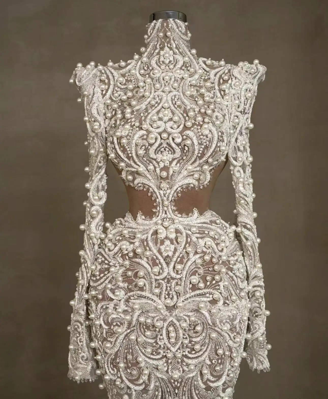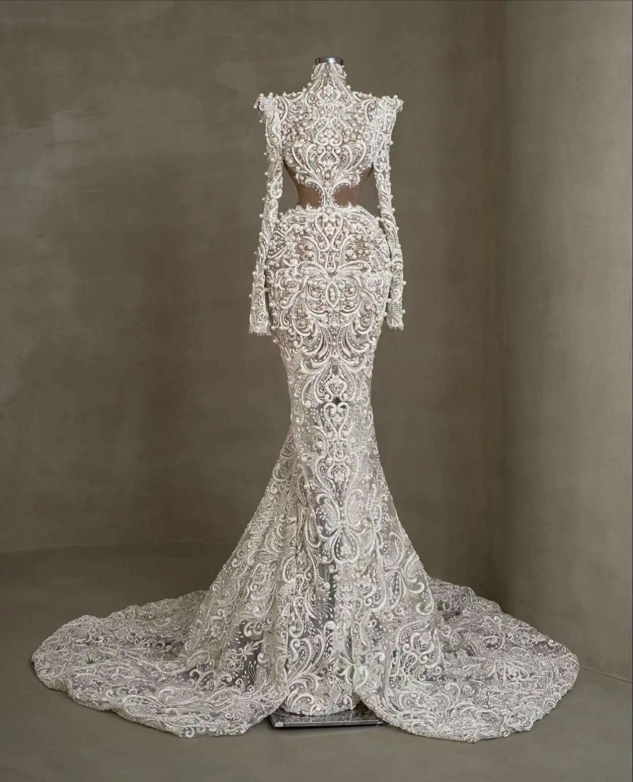 2024 NEW Long Sleeve Saudi Arabia Dresses High Neck Lace Beading Mermaid Wedding Dress