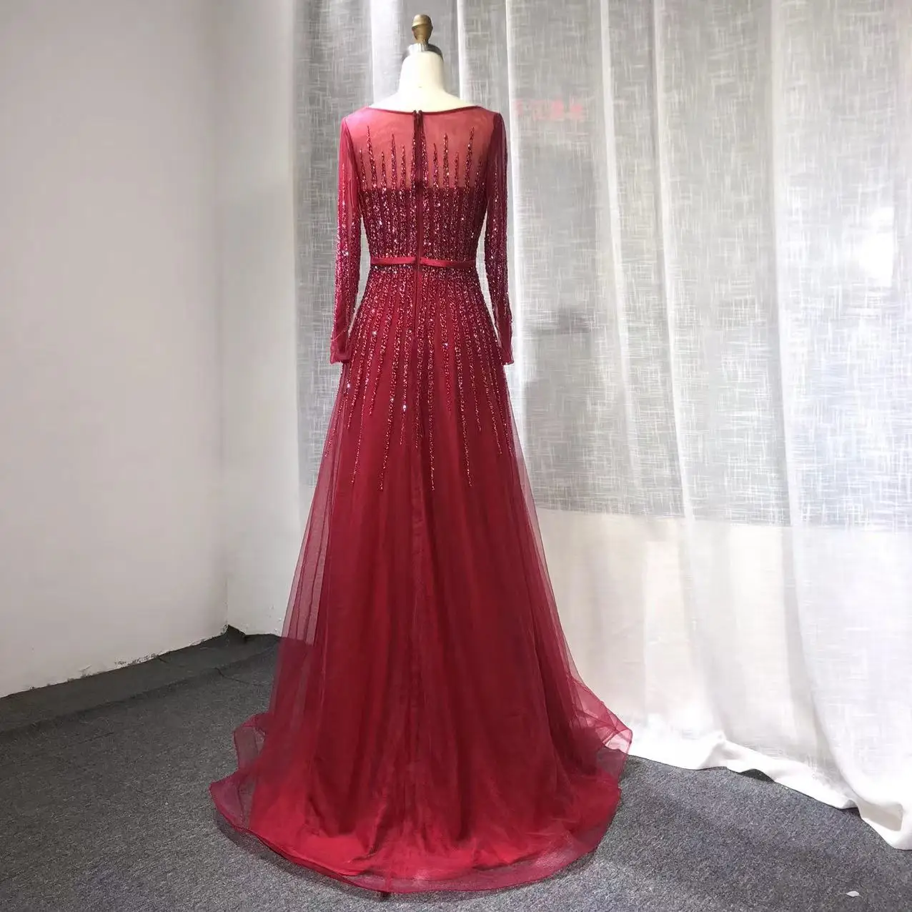 Blue Muslim a Line Beaded Luxury Dubai Long Evening Dresses Gowns 2024 for Woman Wedding Party Dress