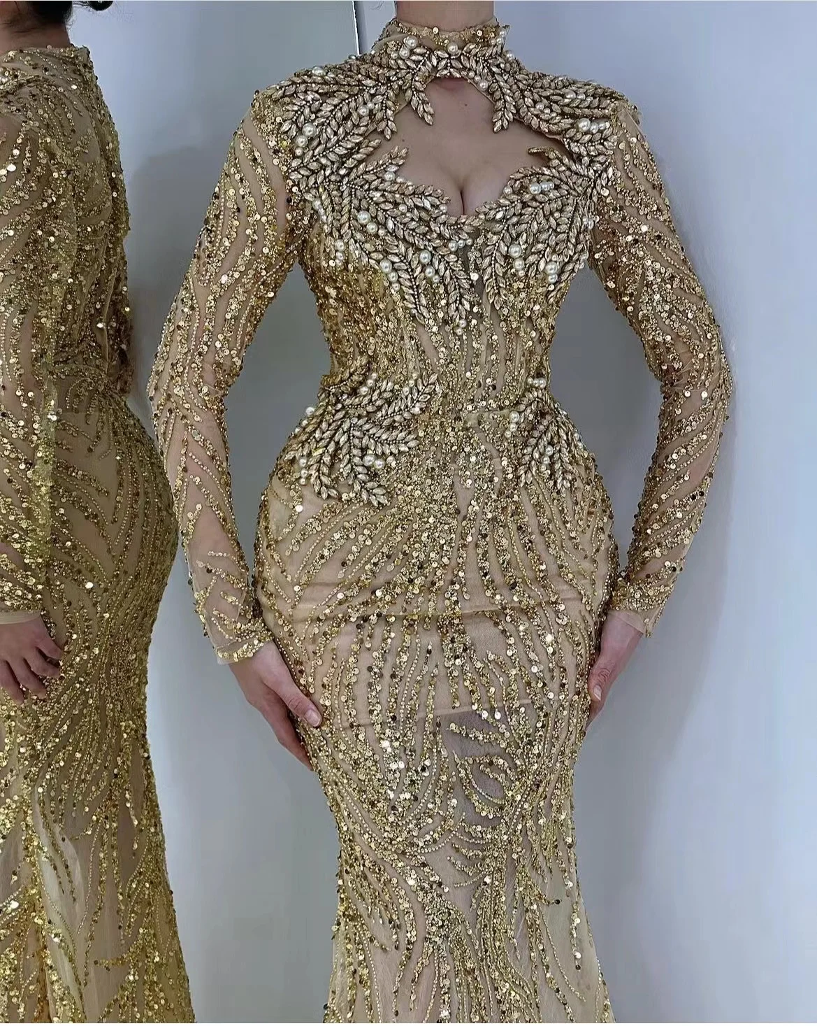 NEW Long Sleeve 2025 Beaded Rhinestone Full Sequin Women Party Elegant Mermaid Luxury Sequin Women Party Elegant Evening Dresses