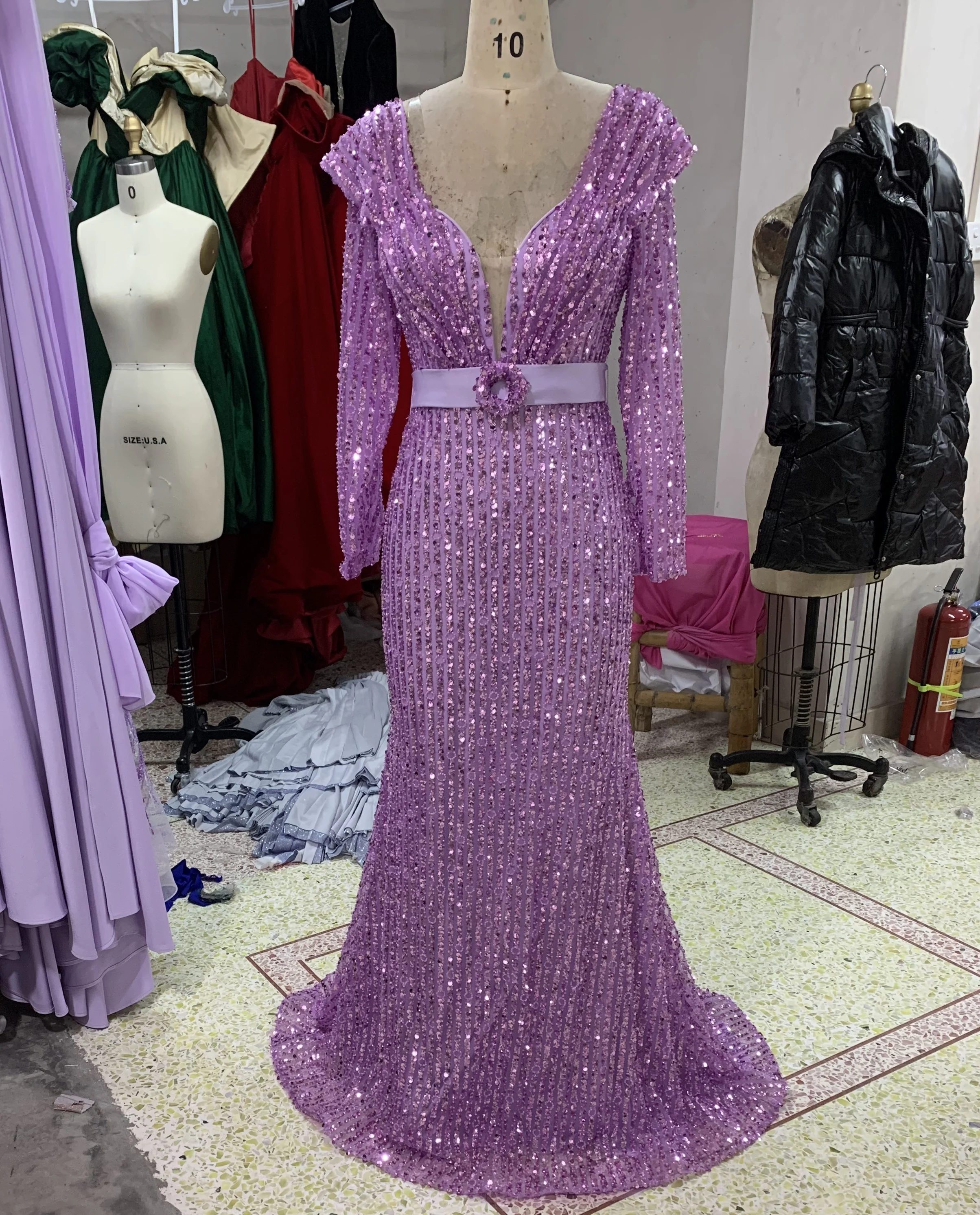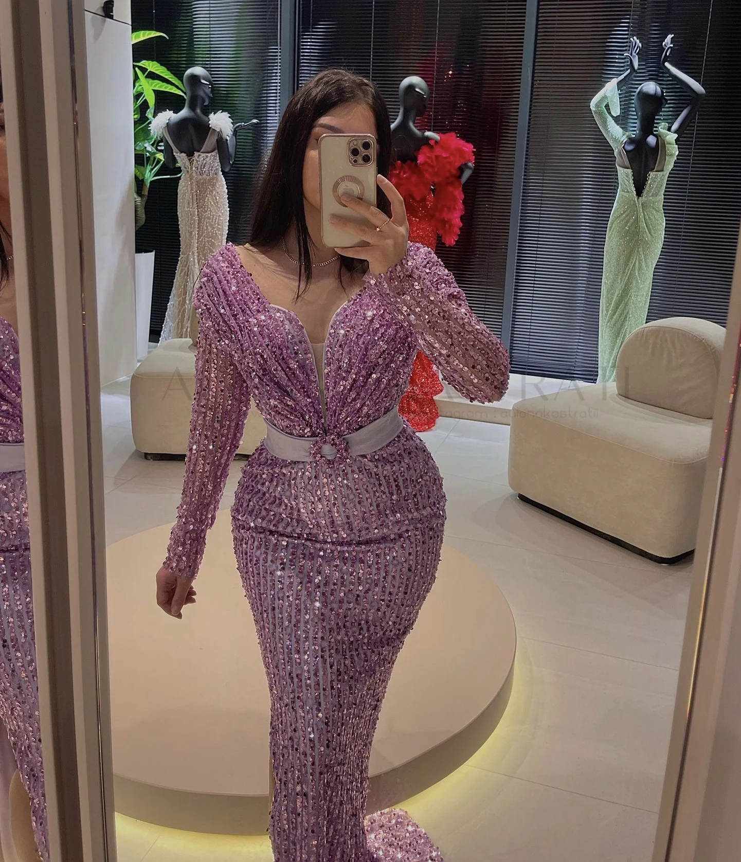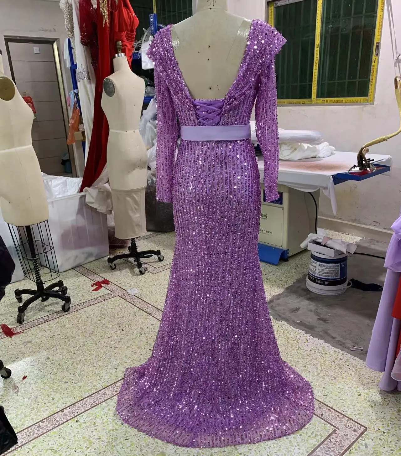 Muslim Purple Cocktail Dresses Mermaid Long Sleeves Formal Occasion Dresses Beaded Evening Party Gowns Vestidos De Coctel