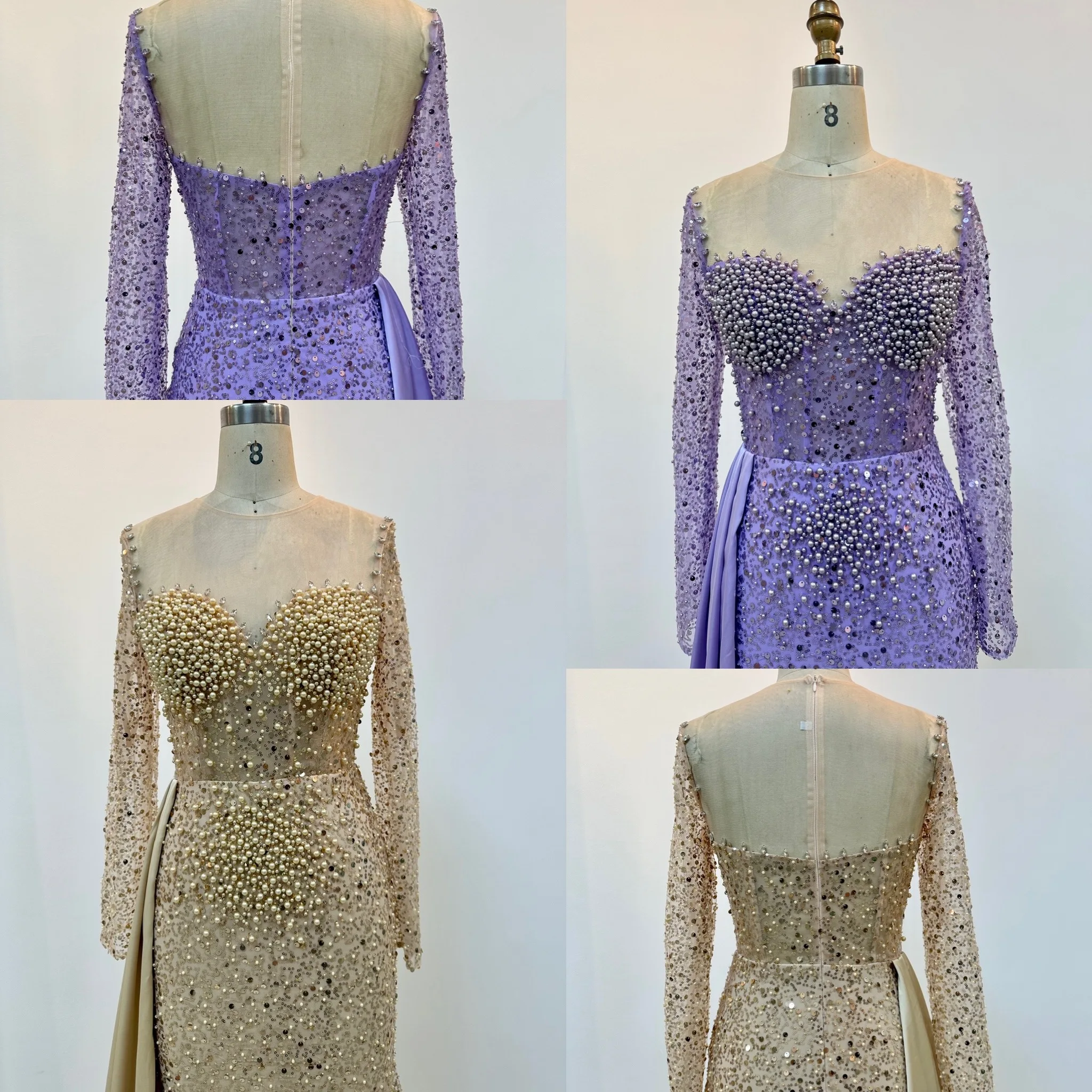 Purple Mermaid Elegant With Overskirt Luxury Pearls Beaded Evening Dresses Gowns for Women Wedding Party