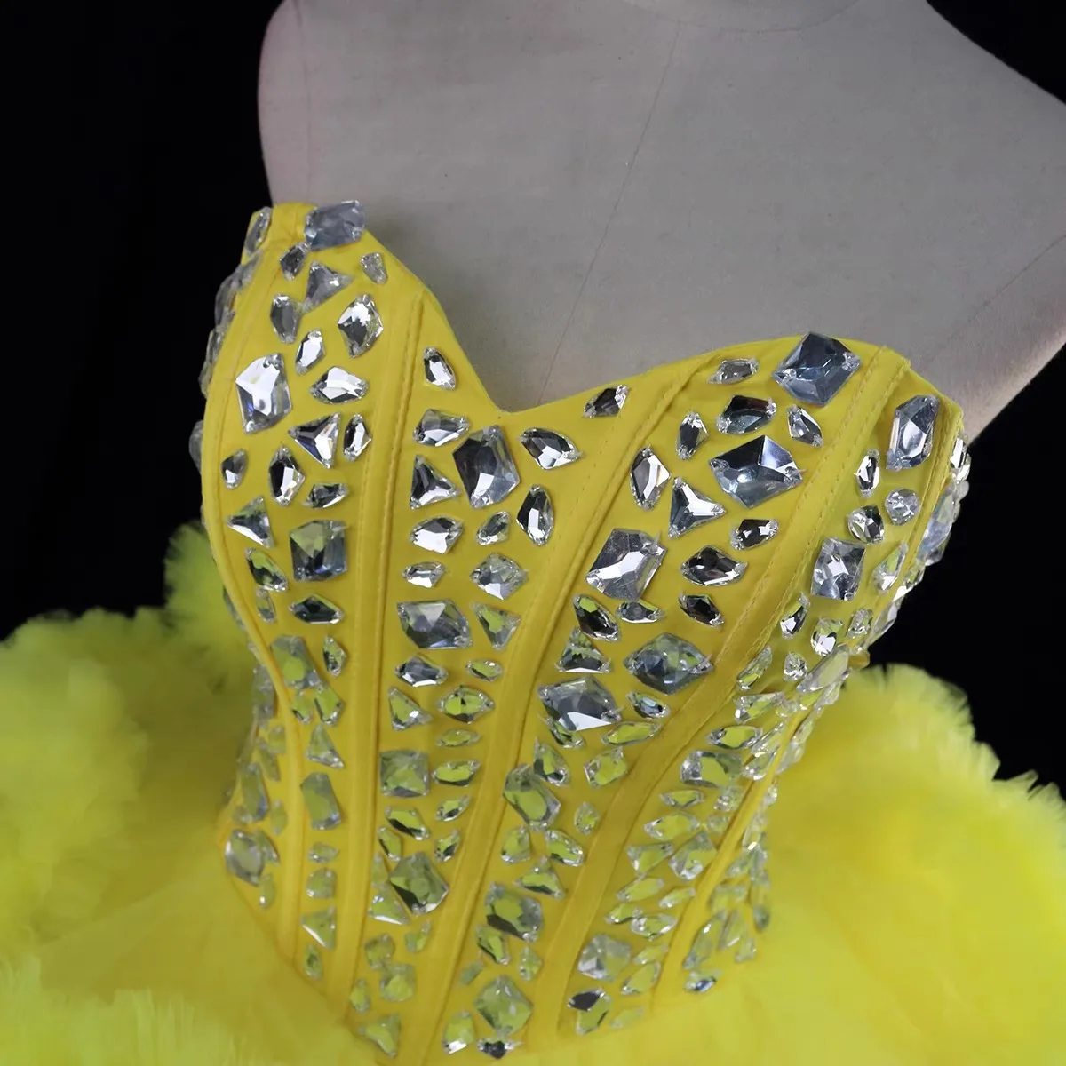 Yellow New Design Sweet Heart Beading Sugar Dress Ruffles Party Evening Dress