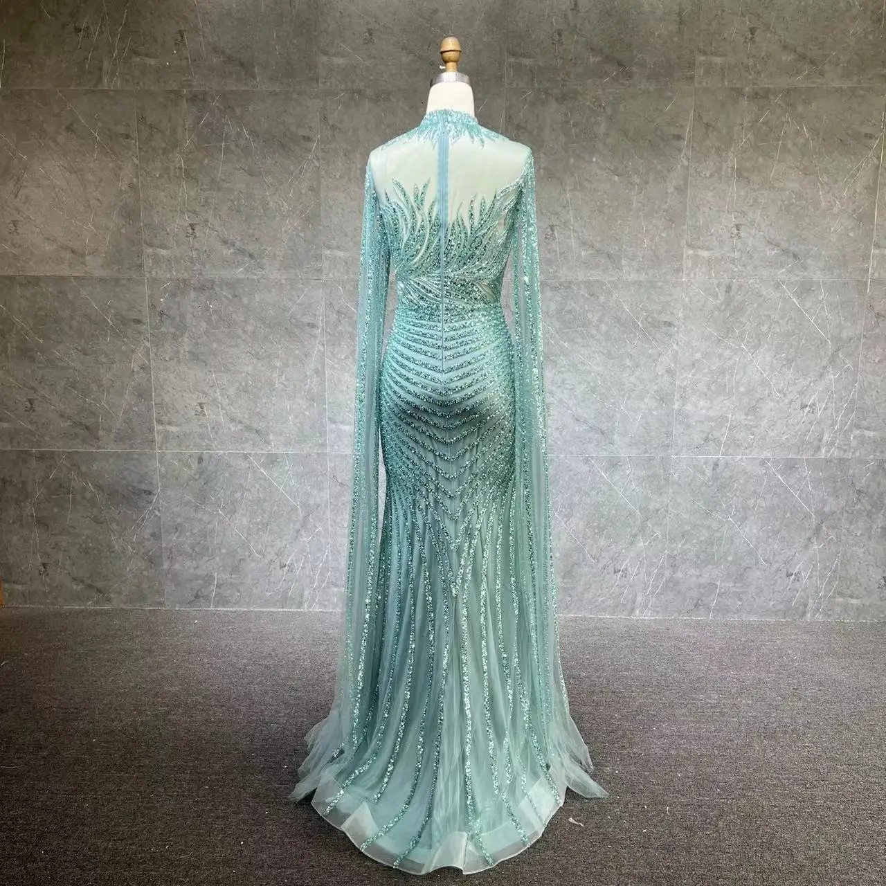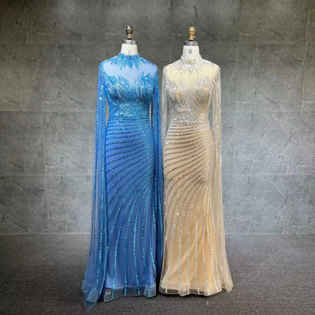 Luxury Dubai Beaded Lace Cape Sleeves Mermaid Evening Gown for Women Wedding Party Dresses