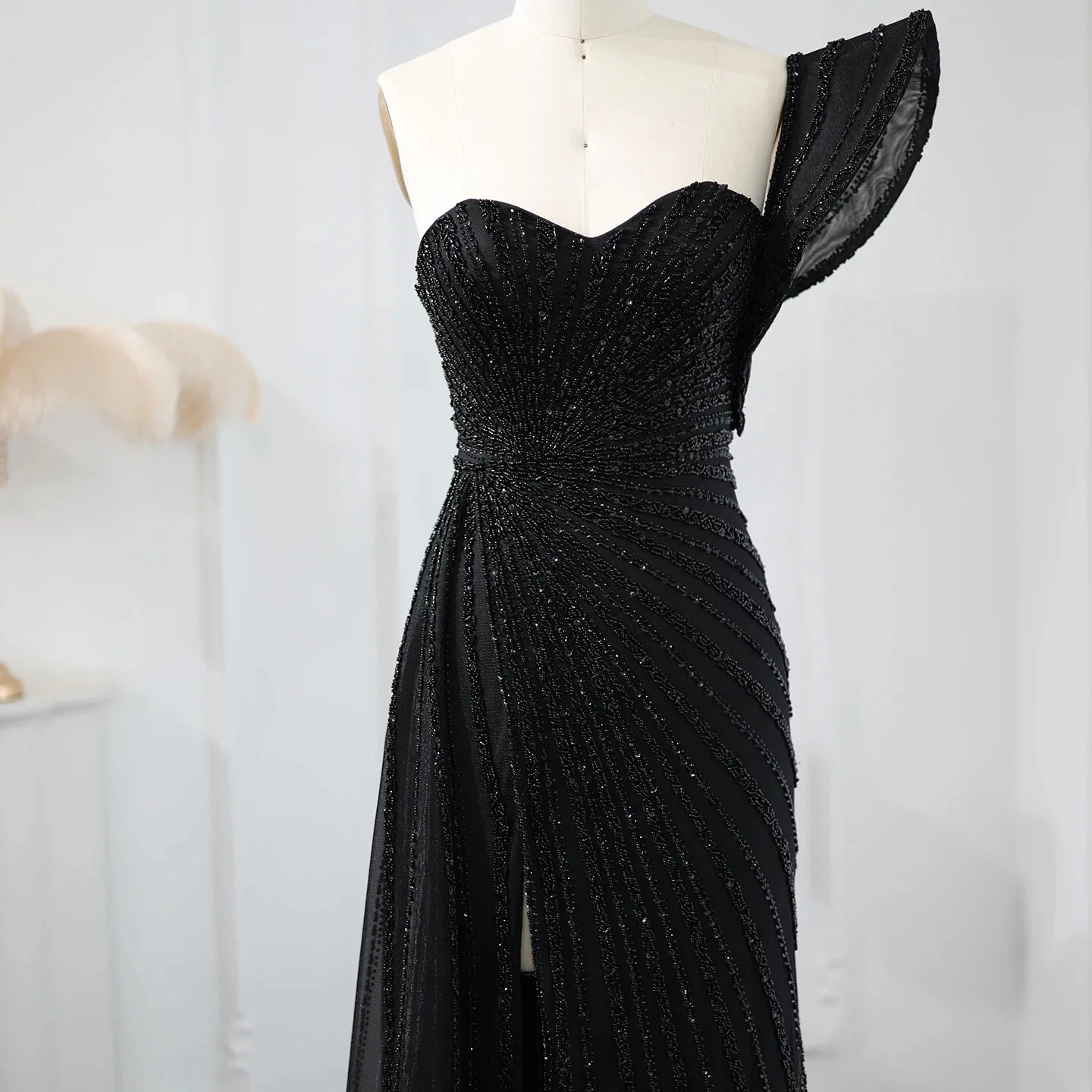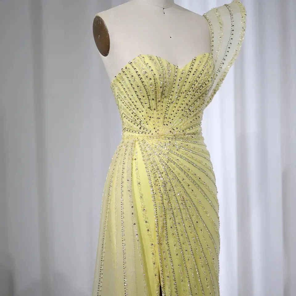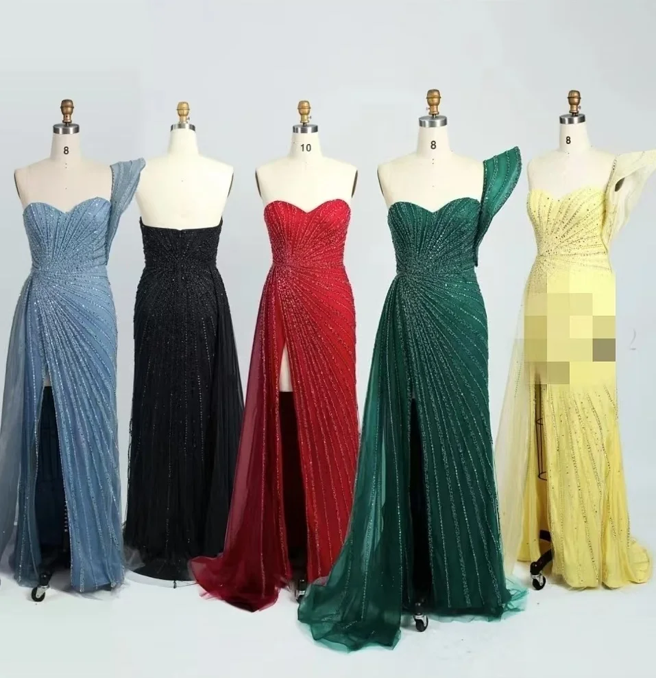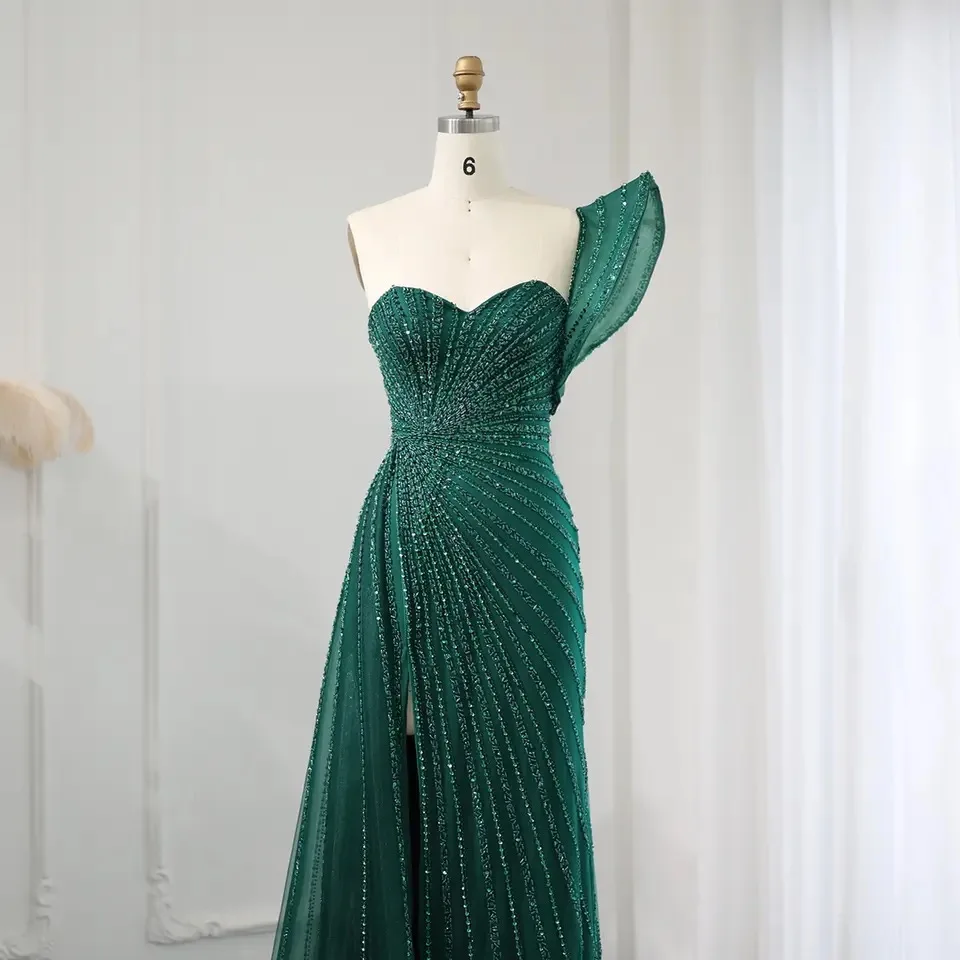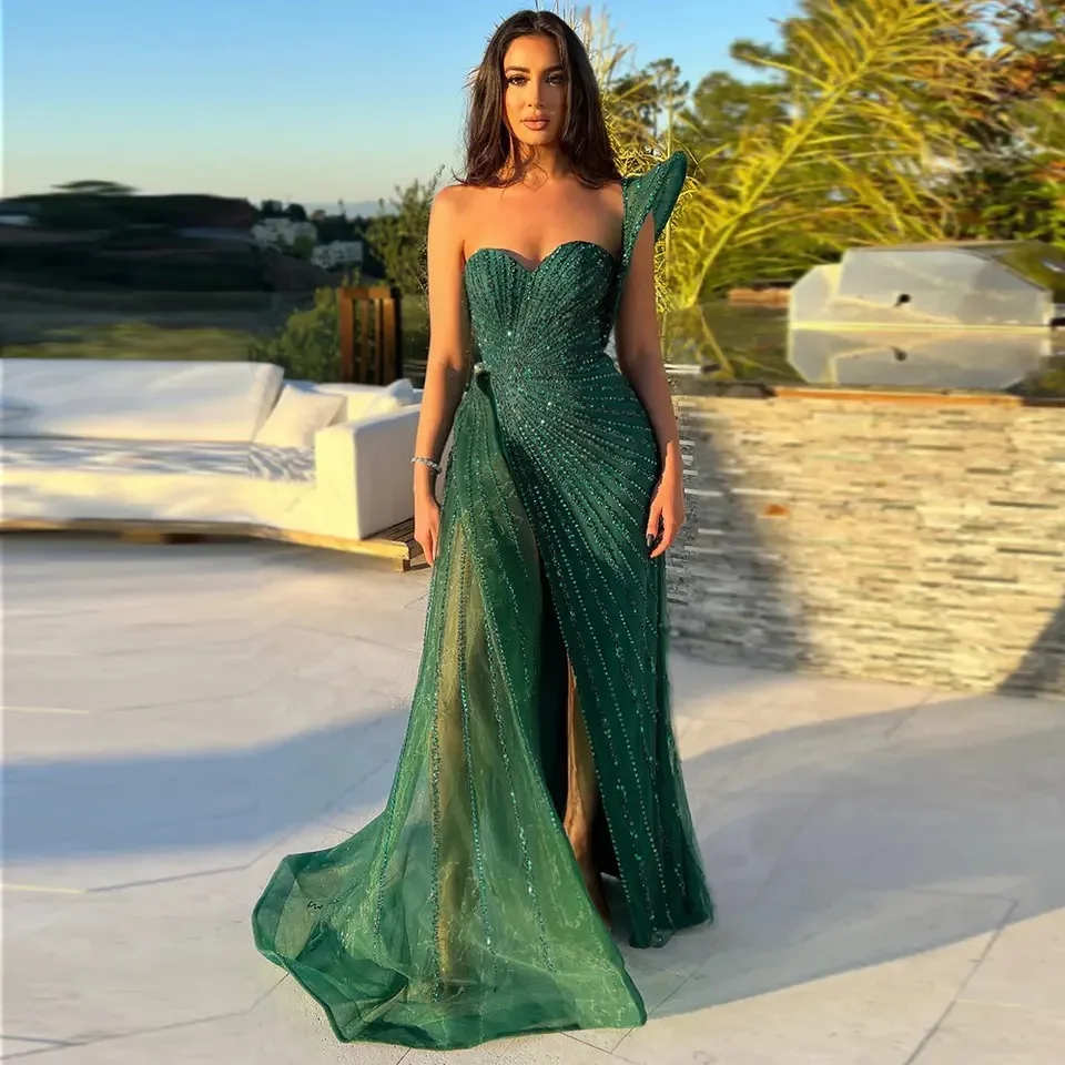 2025 Green Mermaid Beaded Evening Dresses Formal Party Gowns for Women Wedding One Shoulder Side Split Prom Dress