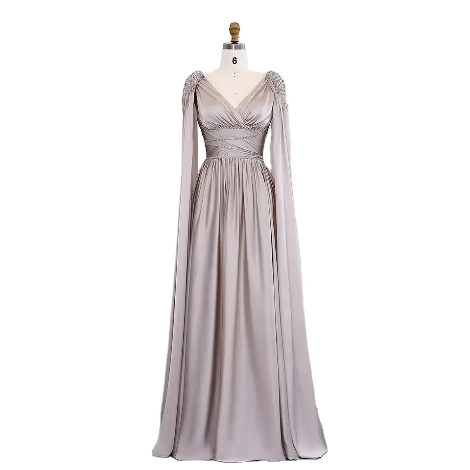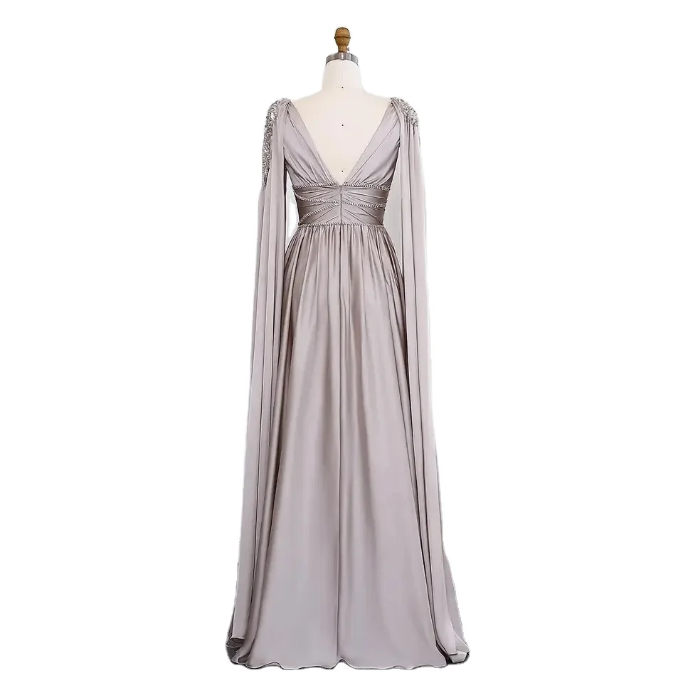 2025 Luxury Crystal Rose Gold Evening Dress With Cape Elegant V-Neck Turquoise Women Wedding Party Gown