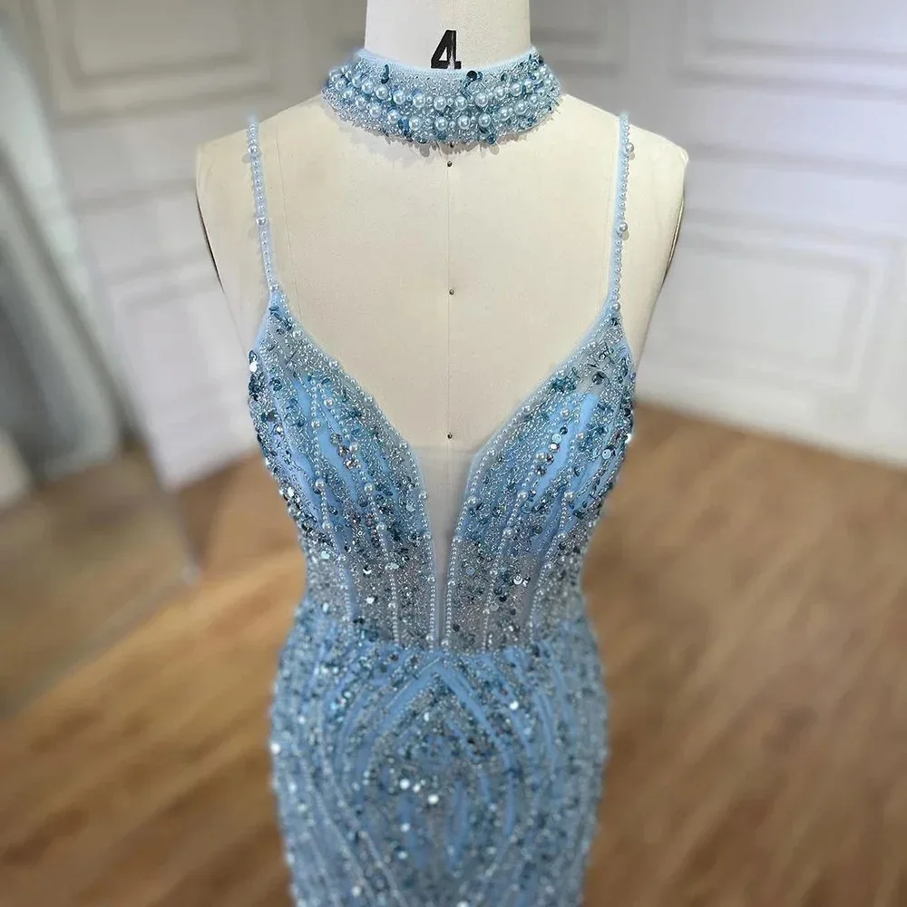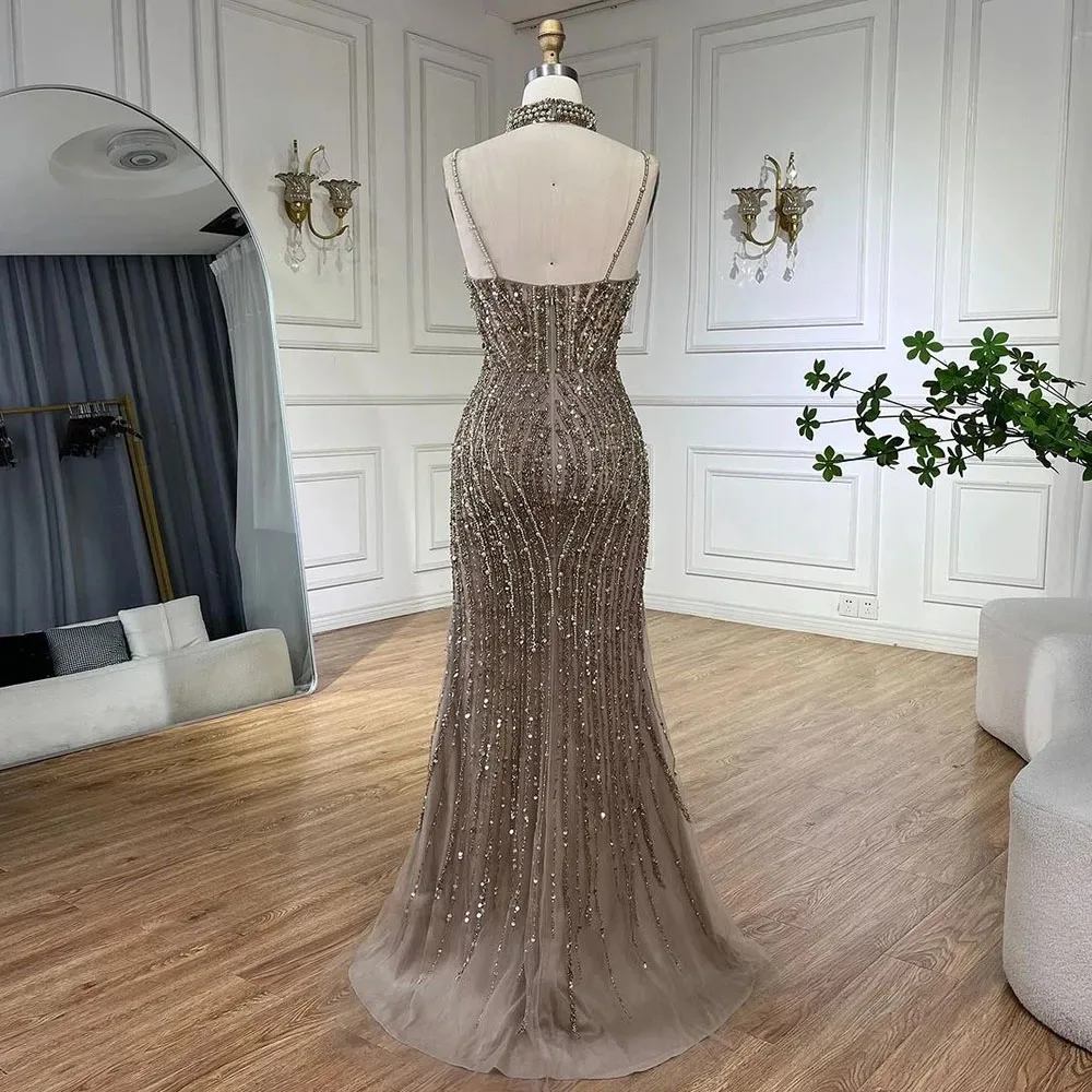 Caramel Mermaid Spaghetti with Split Strap Beaded Evening Dresses Prom Gowns Customize Party 2025