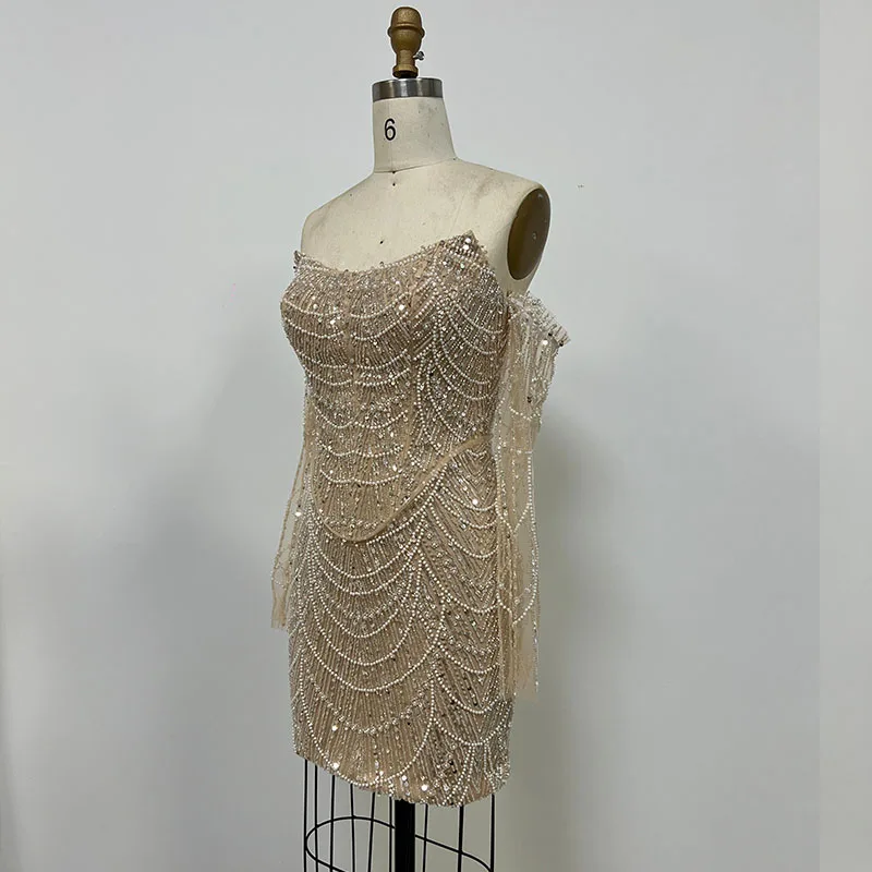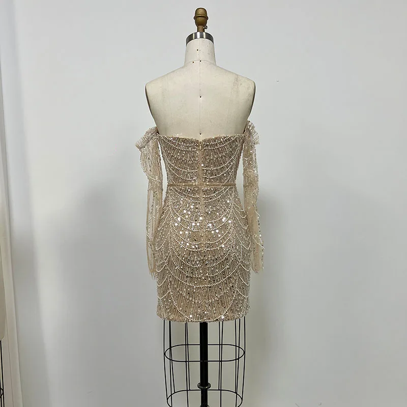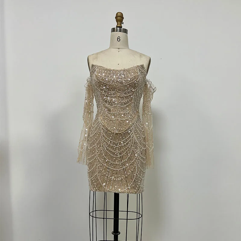 Luxury Dress Women Celebrity Party Wear Long Sleeve Beaded Evening Dresses Gowns