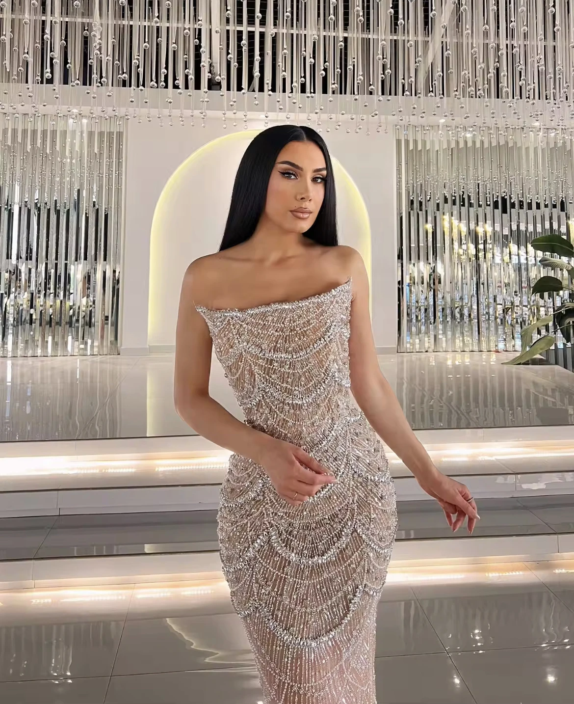 Nude Luxury Beaded Pearls Mermaid Evening Dresses 2025 Party Gowns for Women Wedding