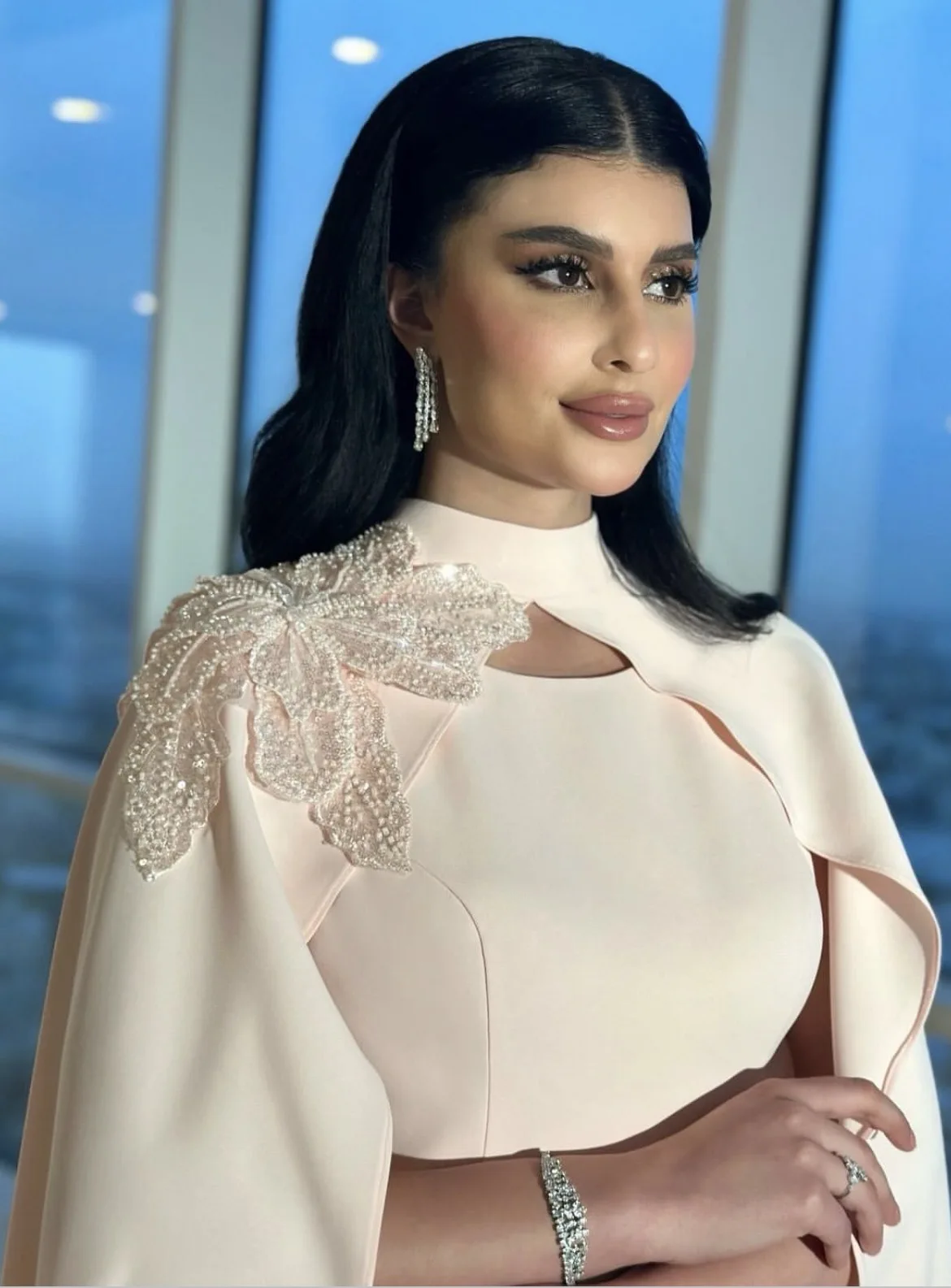 NEW Arrival Pink White Mermaid Evening Dress With Cape Sleeves Arab Beads Flowers Women Wedding Party Gowns