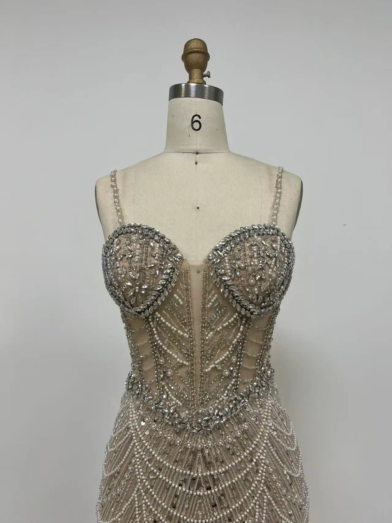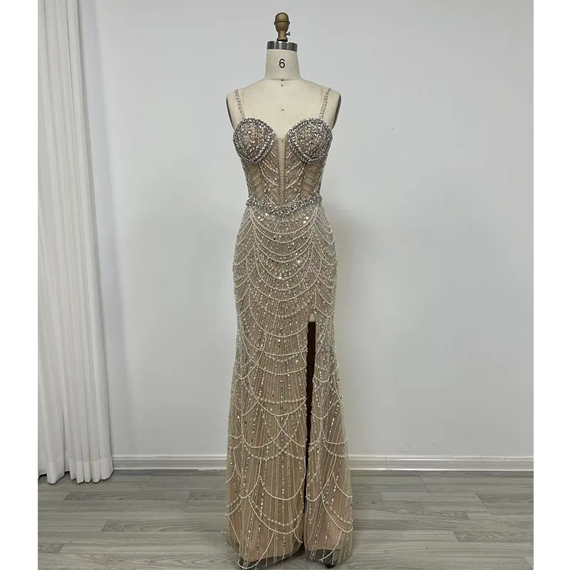 Luxury Dubai Mermaid Crysta Rhinestones Nude Evening Dresses Elegant Sweetheart Beaded Arabic Women Wedding Party Gowns