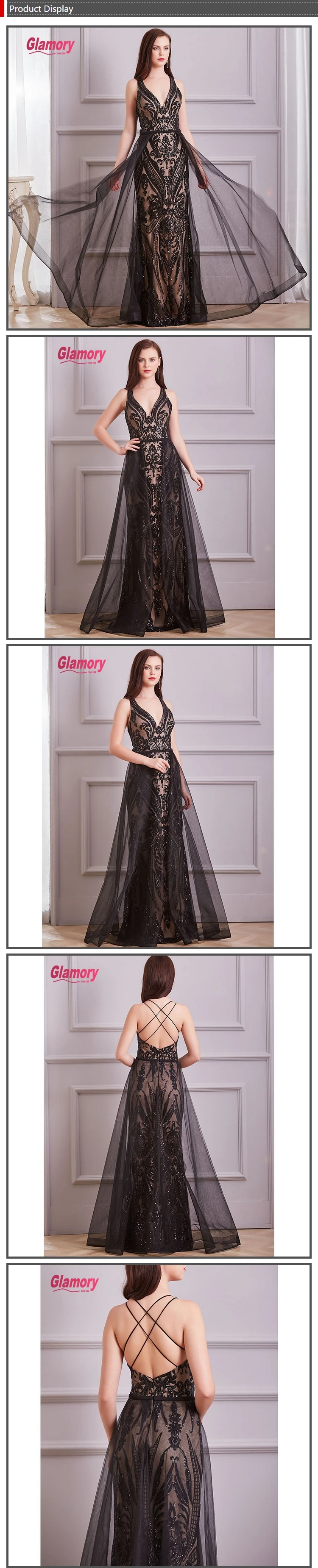 Black Pattern Sequin Evening Dress Sexy Bare Back Long Prom Dress