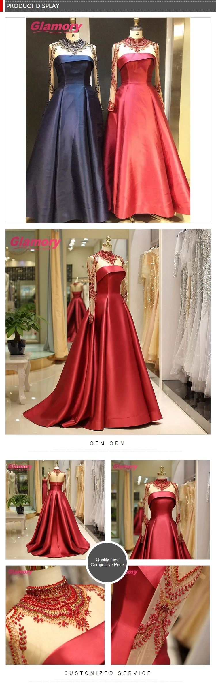 GLAMORYS was founded in the year of 1999 in Chaozhou City, the high end wedding dress gown& evening dress of China. Through the 20 year''s development; we have been devoting ourselves to the happy moments and unique beauty of the blessed. We are well acknowledged in the industry with the design ability to satisfy the specific requirement from customers. We have stable and controllable supply chain for high quality of material like lace, fabric, bead work, etc; We are well equipped with the edge-cutting machine and experienced front-line staff for the perfection of each products. We have the professional pre and after-sale system both for consulting and problem solving to assure all the requirements from customers. For the past two decade, we have been serving thousands of bulk orders for customer from more than 20 countries like UK, SA, SAE, USA, etc and with the development of e-commerce, we now are embracing the new channel and to bring more value to our customers by promising: 1: Small order accepted: we have the warehouse and stock for ready for shipment any time and any moment; 2: Tailer-made service offered: we have the experienced designer listening to your voice; ------ We understand the happy moment for you is precious; We listen carefully and we act heartedly; We cherish the trust you have with us and will contribute all we can with our products for your glamor time!